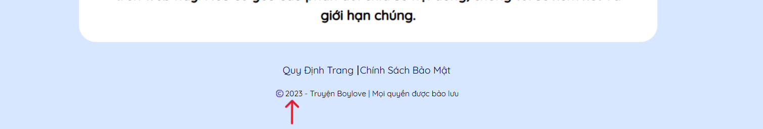 Số năm mở web nằm ở cuối trang